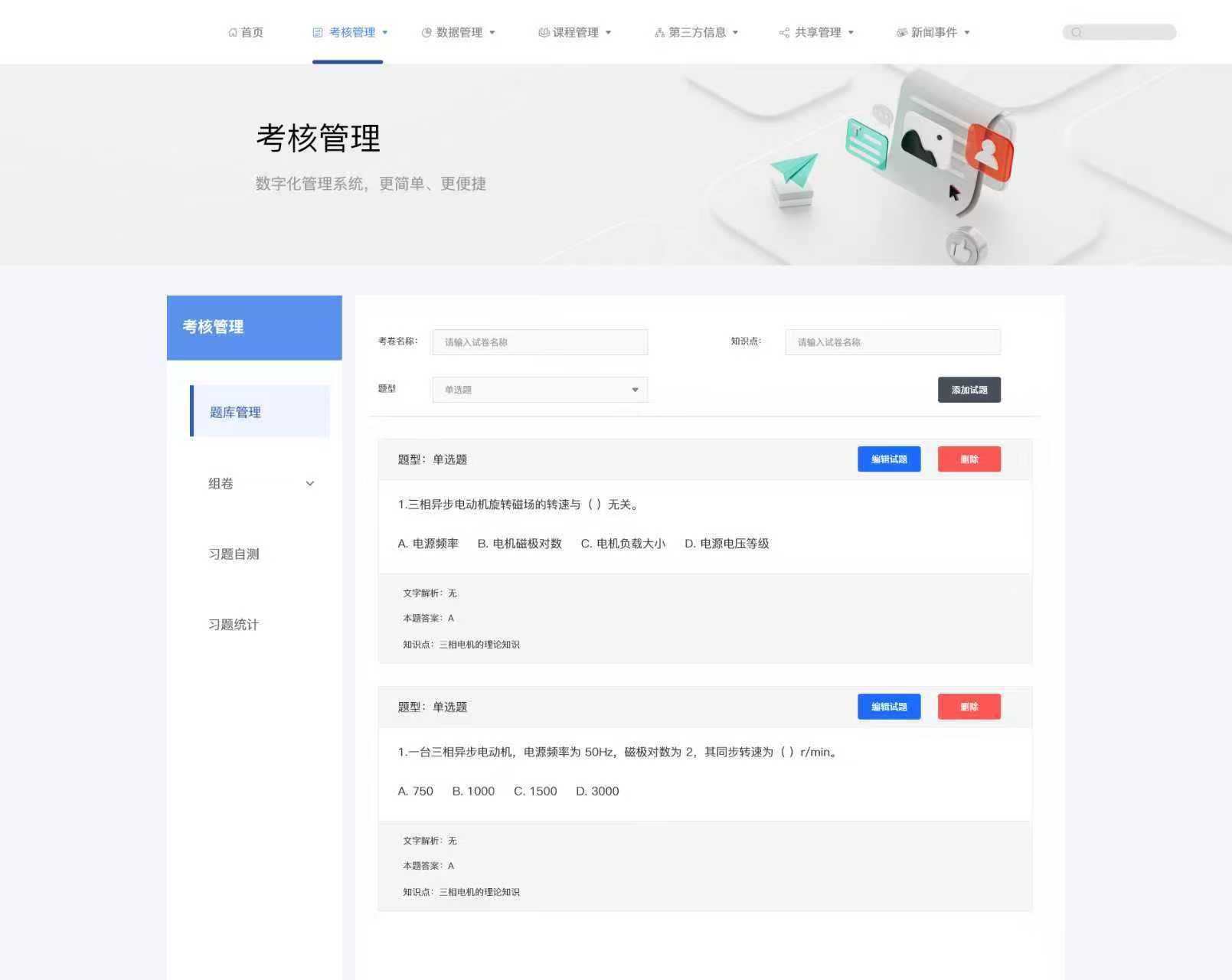 • 富媒体题库(支持公式编辑器+音视频题干)
